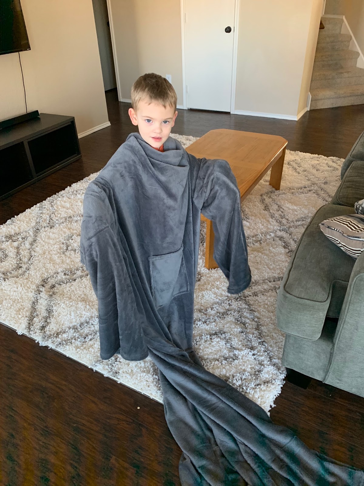 Eric recently surprised me with this cozy snuggie. Haha Levi looks a little like a Star Wars character in it!